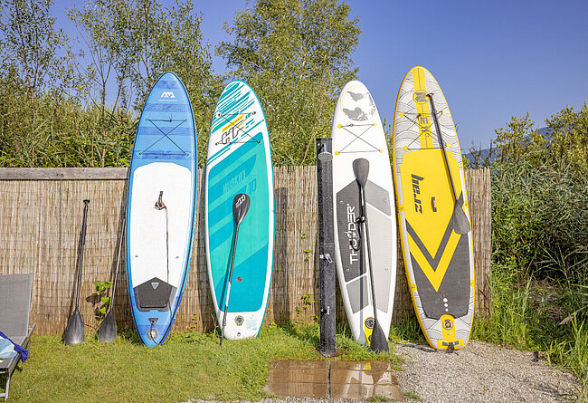 Wer es gerne etwas ruhiger angehen will, kann sich ein SUP schnappen und damit den, 55 Hektar großen, Pressegger See erkunden.