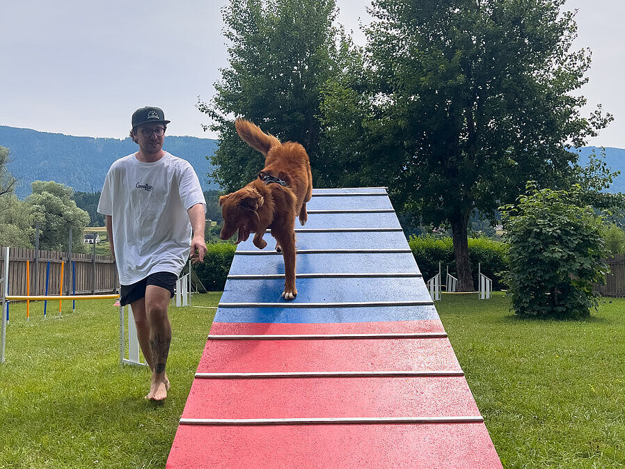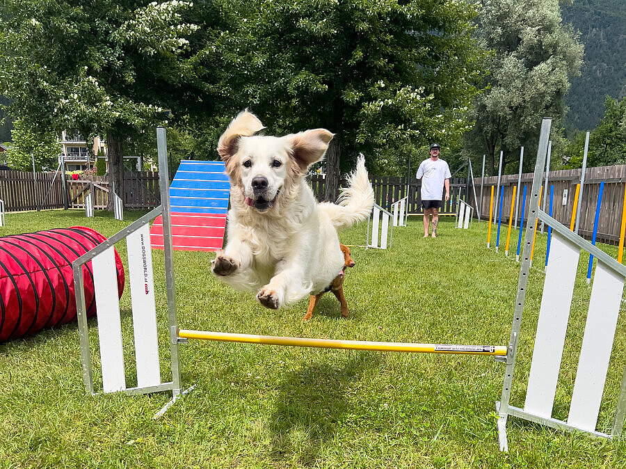 Unternehmungslustige Vierbeiner dürfen sich hier auf einer Wippe, einem Laufsteg, einem Slalom-Parcours sowie einer sogenannten Agility A-Wand nach Herzenslust austoben. Außerdem gibt es spezielle Hürden, die mit Geschicklichkeit und Energie überwunden werden wollen.